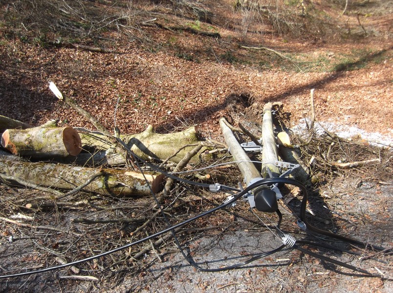 La descente du col des Palomières avec des arbres tombés sur les lignes électriques sur plusieurs kilomètres :