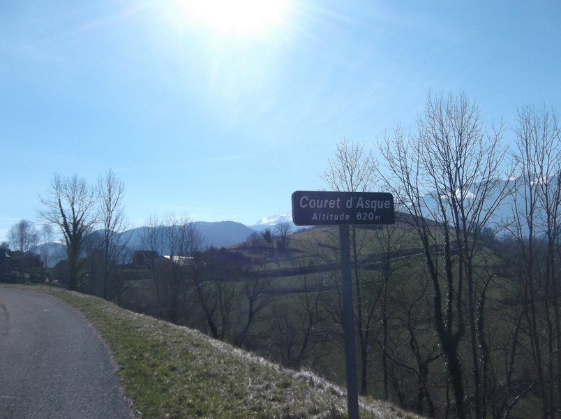 La vue depuis le Couret d’Asque est assez sympa avec le village d’Asque en contrebas. Une fois en haut à 620m, j’ai basculé pour attaquer la descente sur Bulan. Une descente rapide et agréable, sans aucune voiture. Un régal. Sitôt en bas, c’est reparti pour la courte montée de Laborde qui permet ensuite de basculer et de descendre vers Esparros. Juste avant Esparros, la route se remet à grimper et c’est l’ascension du col de Coupe (720m). J’avais déjà monté plusieurs fois le col de Coupe par ce versant, c’était quand j’étais au collège, ça faisait longtemps que je n’y étais plus retourné. J’adore cette montée, très jolie, 6 km de long avec vue sur le Pic du Midi. J’étais content de voir que les jambes tournaient bien et mon 39×25 était trop facile presque^^