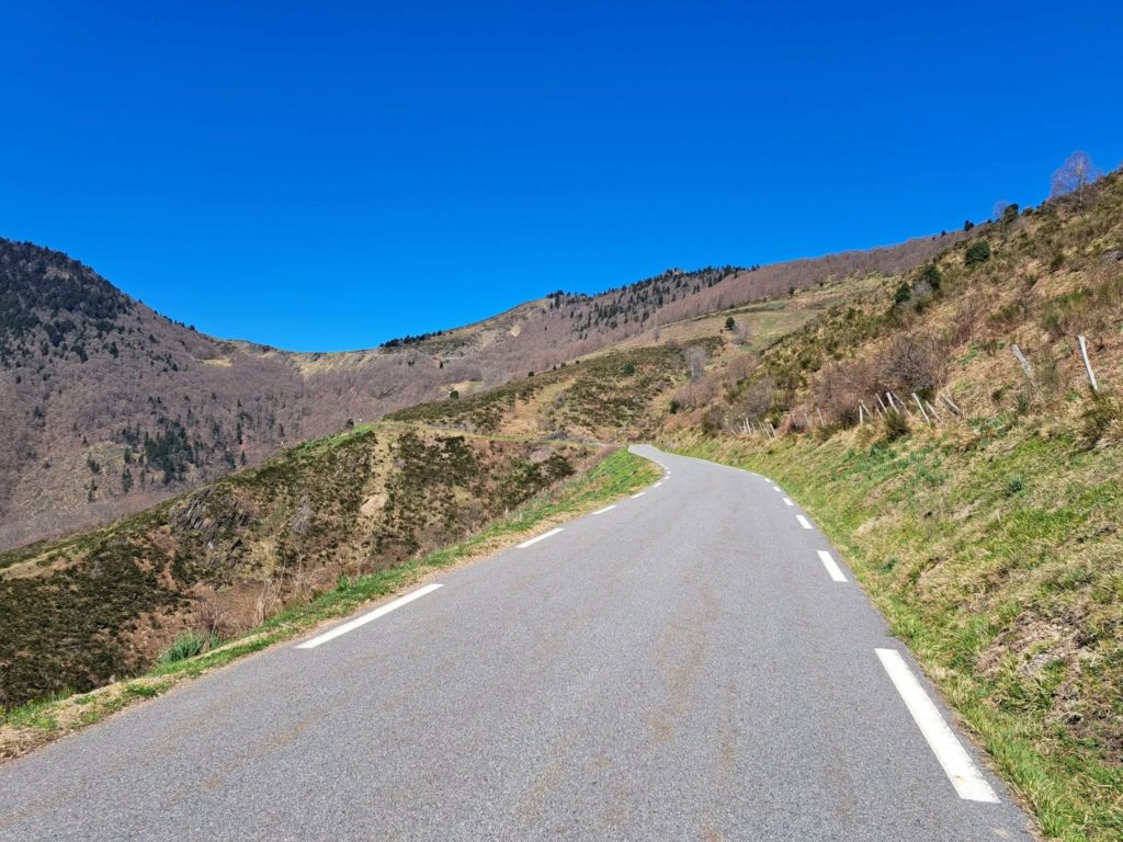 Le début n’est pas super agréable dans le brouillard et la fraicheur. De la bruine par moment… Pfff… Les kilomètres défilent, je passe Bagnères, et c’est un peu après que ça se lève enfin et que le ciel bleu se dévoile. Enfin !