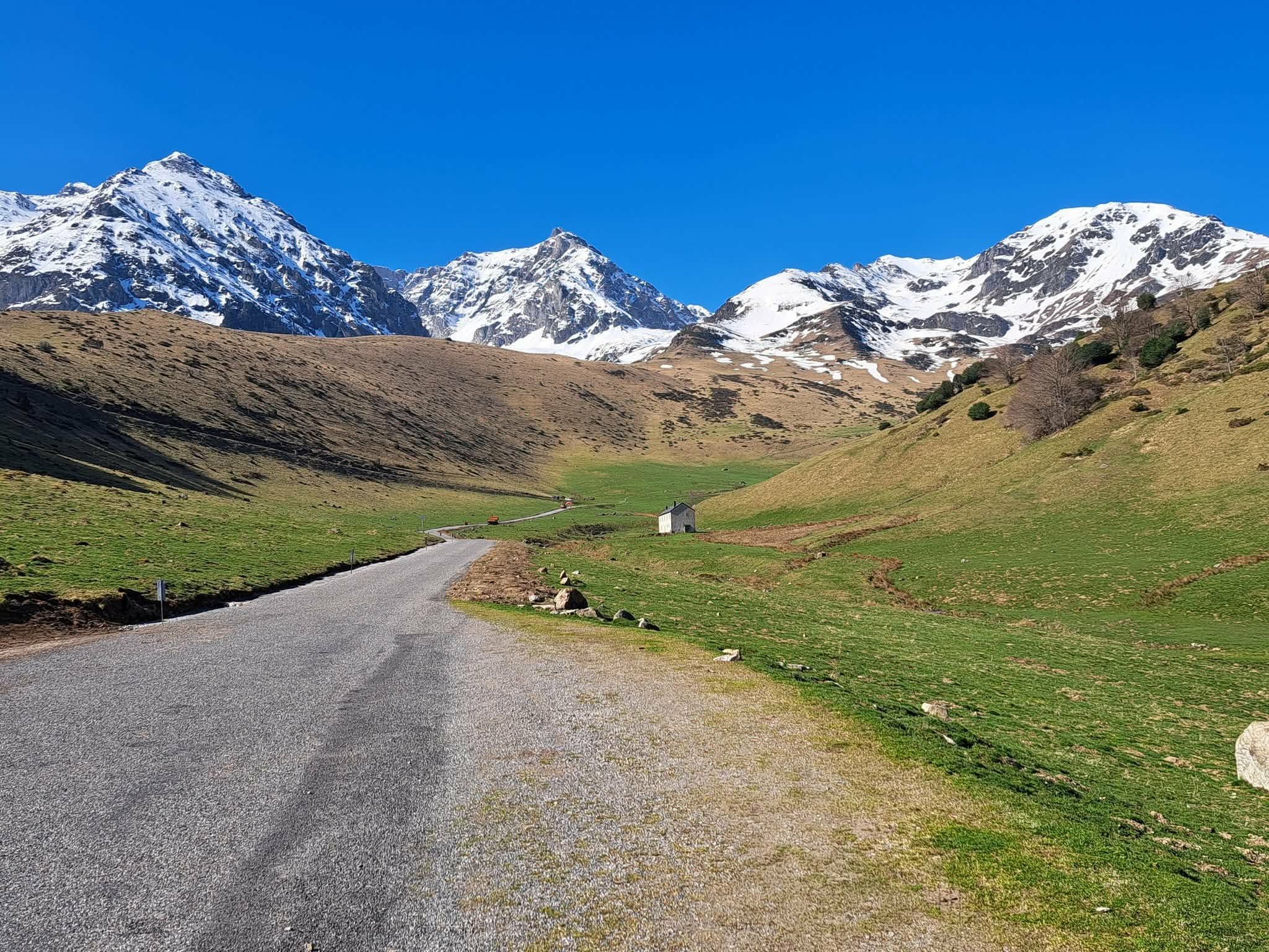Allez, c’est parti pour la descente sur Ancizan, je descends tranquillement sans risque. Quelques arrêts photos quand la route est en balcon sur la vallée. Puis je rejoins la route de la vallée via une petite déviation suite à un chantier. Je rejoins Arreau et c’est parti pour l’ascension du col d’Aspin.