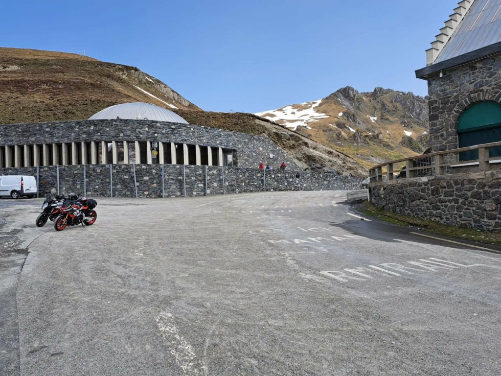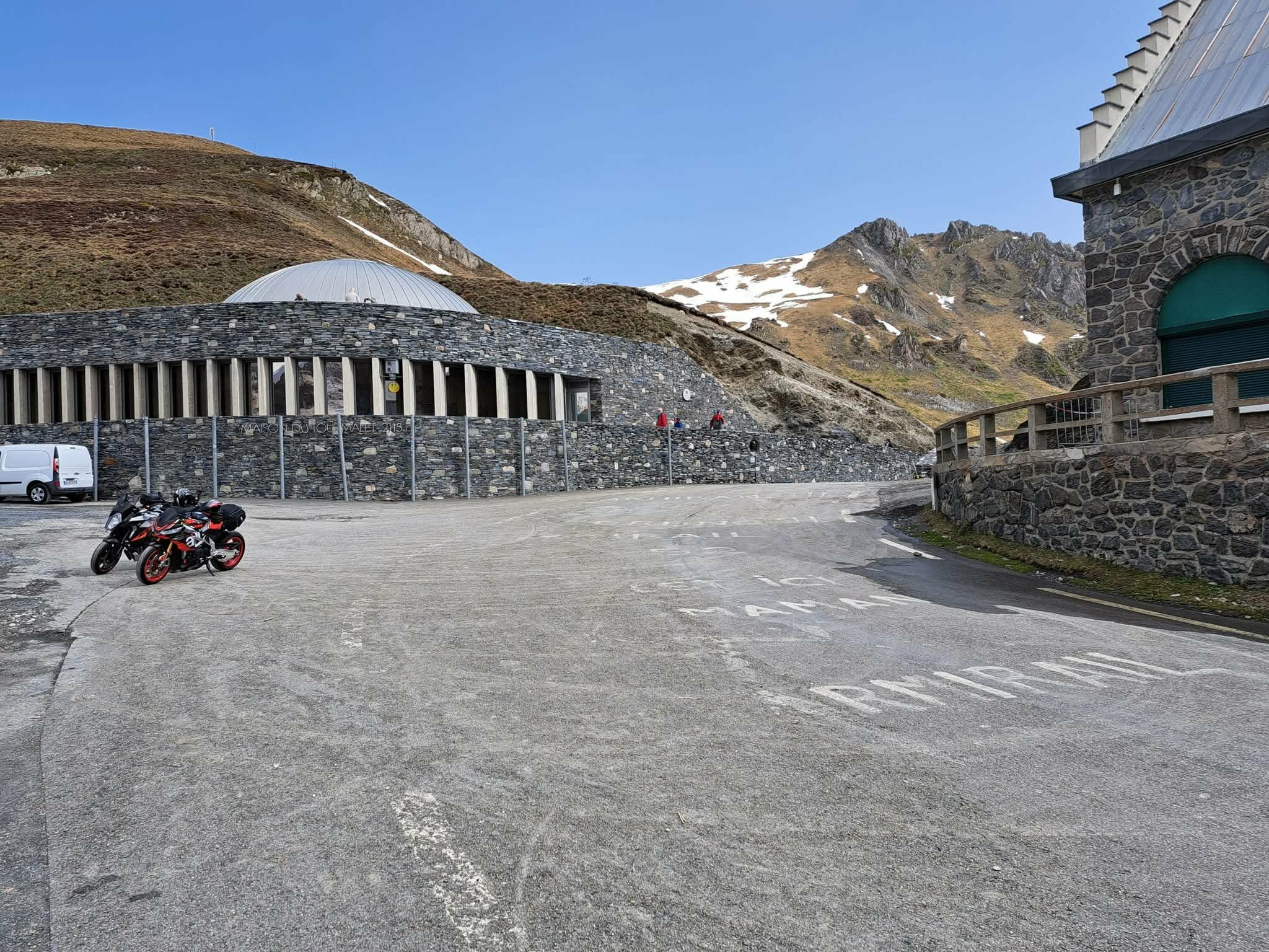 La route est maintenant ouverte à la circulation après La Mongie jusqu’au sommet, il y a quelques voitures et motos.